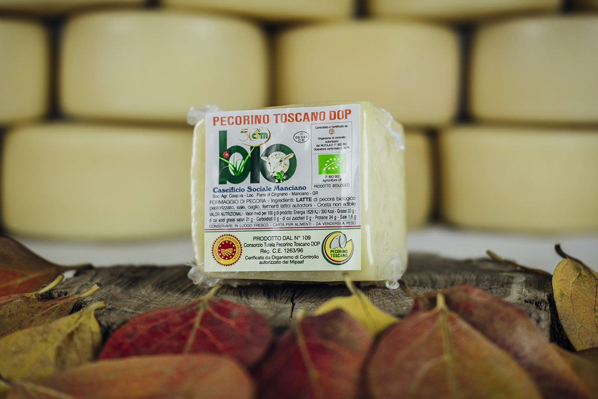 Il classico Pecorino Toscano DOP a pasta tenera, ottenuto dalla lavorazione di latte ovino biologico proveniente da allevamenti certificati.